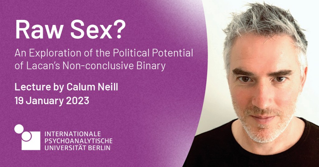 Calum has agree to join me for an open workshop at the Ruhr-University Bochum on Lacan’s discourse theory. We will then head together to Berlin, where Calum will give a lecture at the International Psychoanalytic University (IPU) on the subject of gender. Both events are hybrid: all you need to do is register for free.